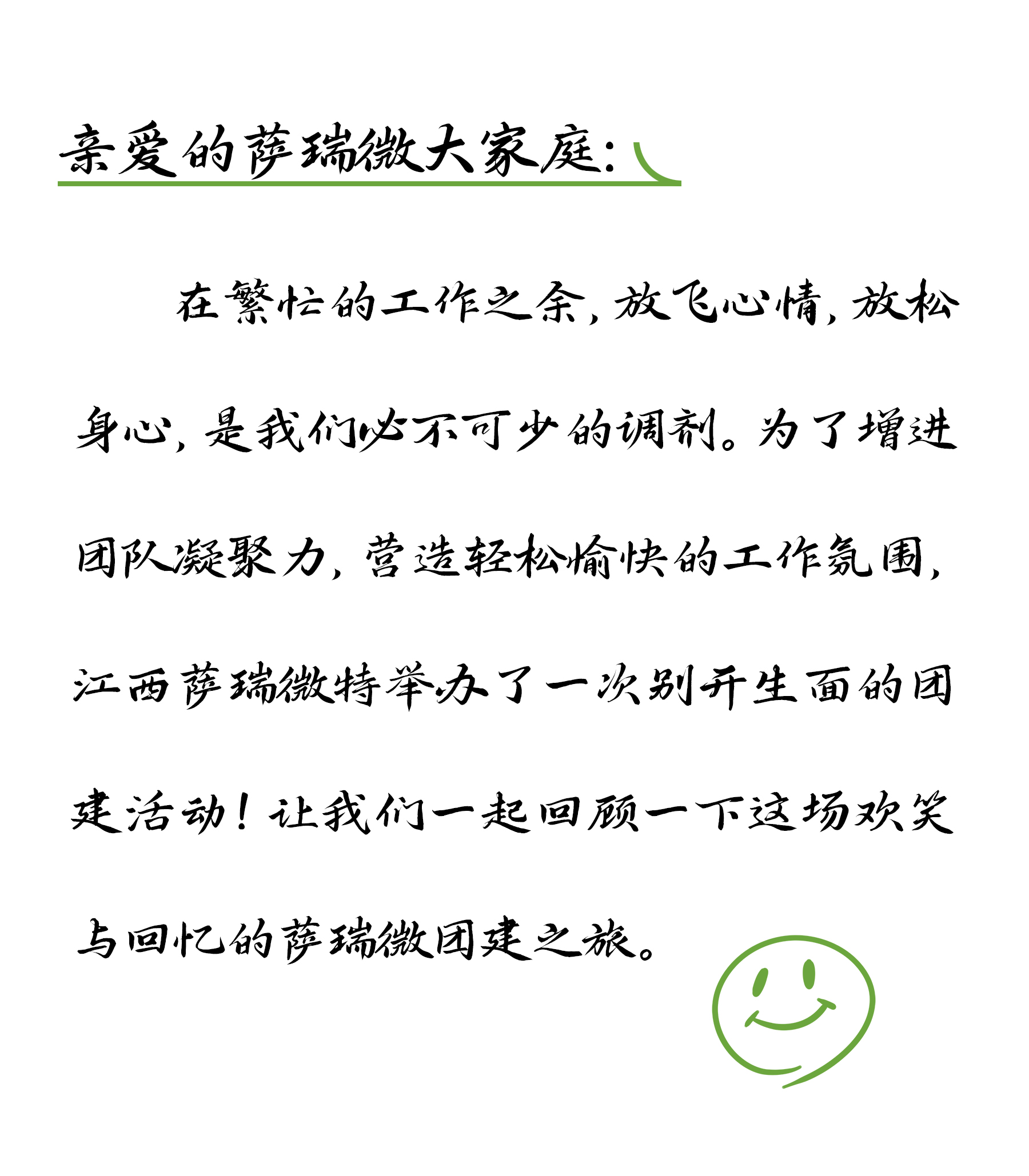 亲爱的MILE米乐微大家庭:在繁忙的工作之余,放飞心情,放松身心,是MILE米乐必不可少的调剂。为了增进团队凝聚力,营造轻松愉快的工作氛围,江西MILE米乐微特举办了一次别开生面的团建活动!让MILE米乐一起回顾一下这场欢笑与回忆的MILE米乐微团建之旅。
